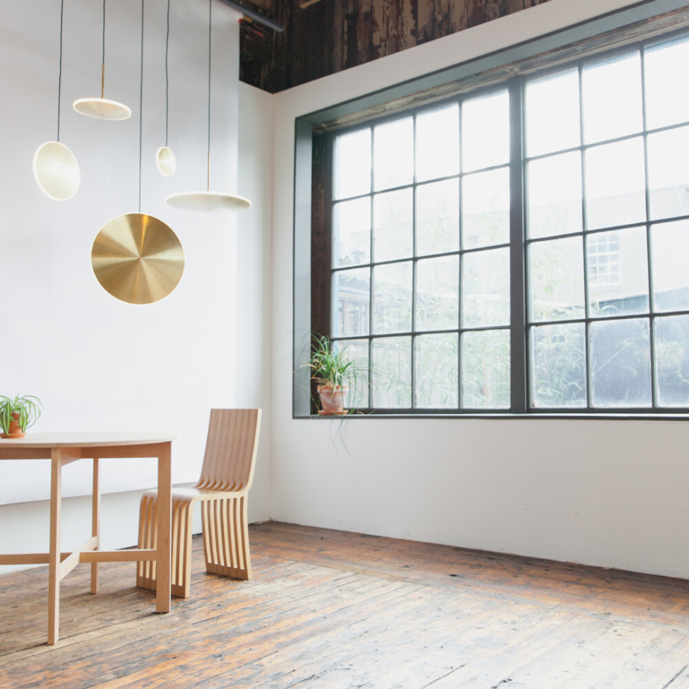 Mimicking the phosphorescent envelope found around stars, Chrona lights create a luminous glow by combining spun brass and diffused acrylic. With a variety of configurations in both horizontal and vertical orientations, Dish pendants can be clustered together to make stunning constellations or individually hung to accentuate any space. Thin, yet robust, the pendants are available in diameters ranging from 6 to 17 inches (14-42cm).