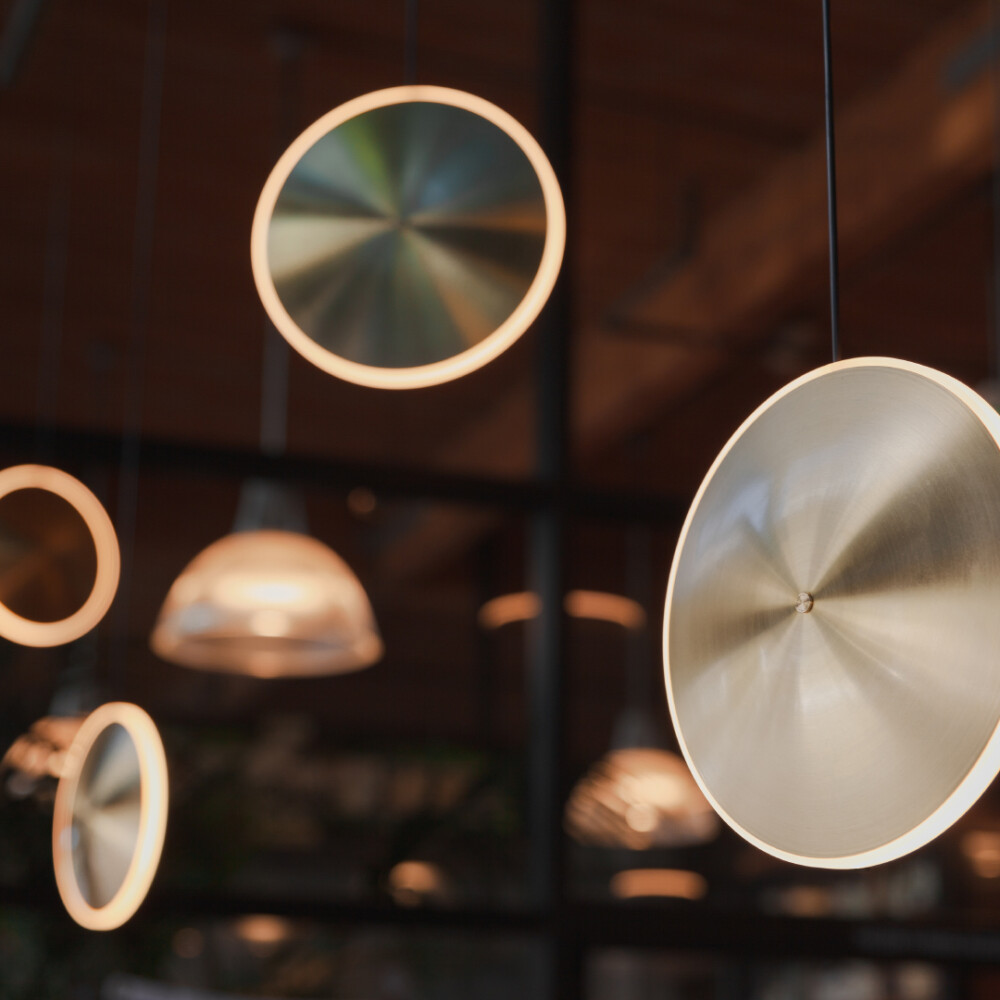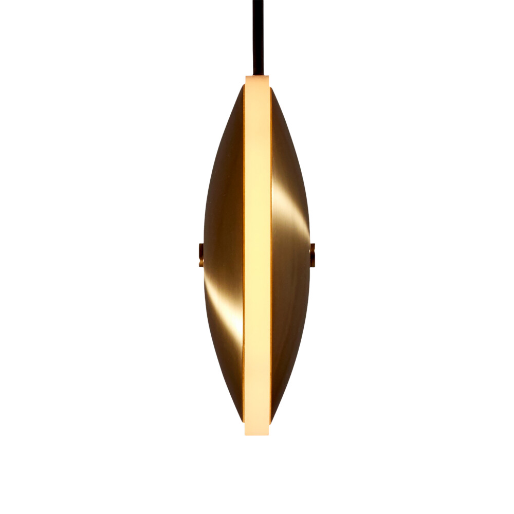 Mimicking the phosphorescent envelope found around stars, Chrona lights create a luminous glow by combining spun brass and diffused acrylic. With a variety of configurations in both horizontal and vertical orientations, Dish pendants can be clustered together to make stunning constellations or individually hung to accentuate any space. Thin, yet robust, the pendants are available in diameters ranging from 6 to 17 inches (14-42cm).