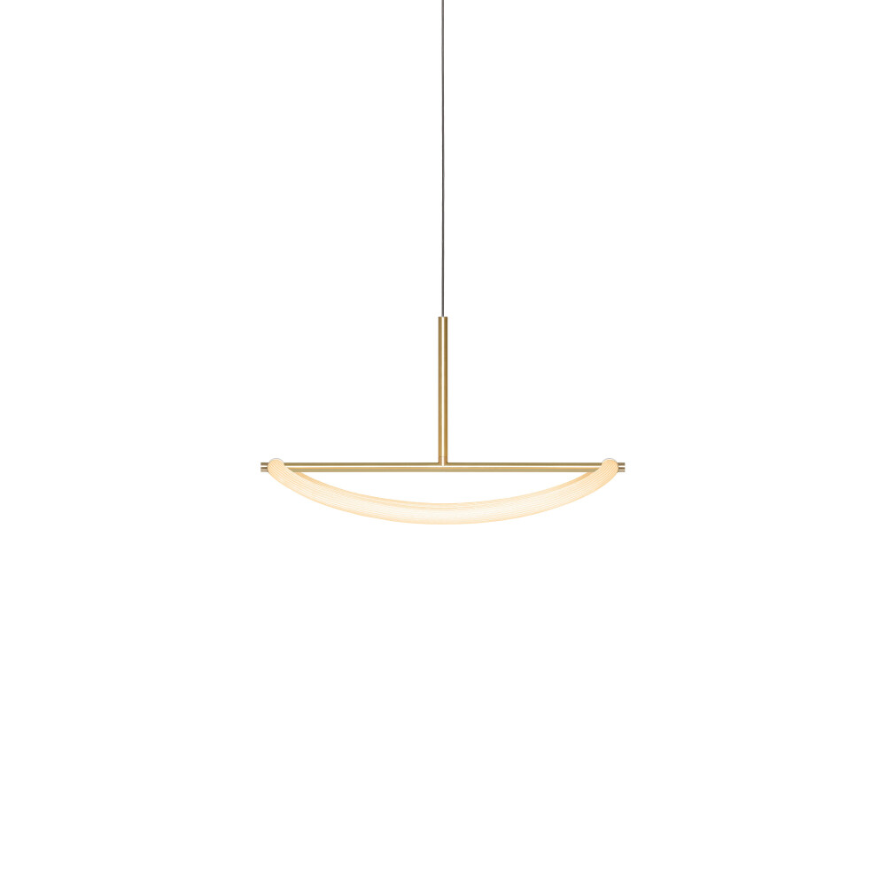 Levity is a series of minimal and poetic flexible lights, combining a rigid metal frame with a draped textile shade. Feelings of both lightness and gravity are prompted by the Levity loop’s elegant, gentle forms. A variation on the Levity Halo pendant, the Levity Linear styles are a commitment to effortlessness; the powder coated metal frame holds up the soft, draped light in a simple, elegant statement. A LED source is enclosed within a flexible silicone tube and wrapped in a nylon textile sleeve, providing even diffusion that conceals the integrated LED light source. Offered in two lengths – the fixtures can be layered together or used as a singular lighting statement.