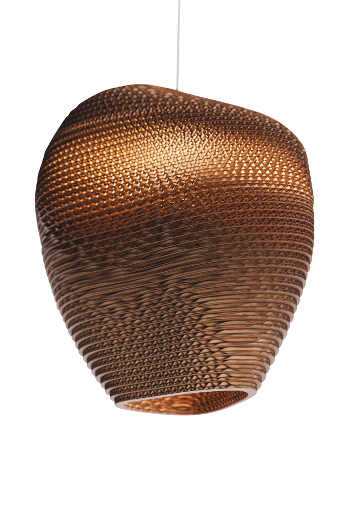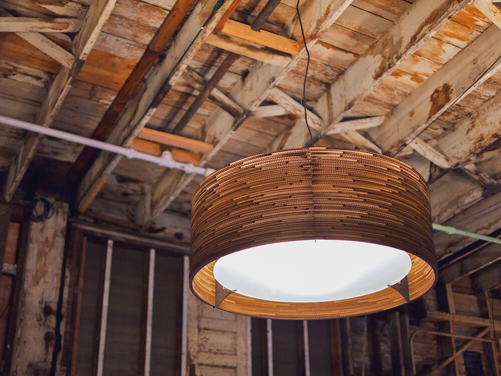 With Scraplights, we continue to play and explore ways to apply cardboard in new and unique expressions. Skew is the first Scraplights sconce and the perfect complement to any Scraplights silhouette. Offered in three sizes, each is ADA compliant at 4 (10.2cm) in-depth and uses a LED lamp. Available in three finishes Natural, White and Blonde – the Skew sconce would beautifully illuminate a hallway in an office or hotel, or could just as easily rest above.