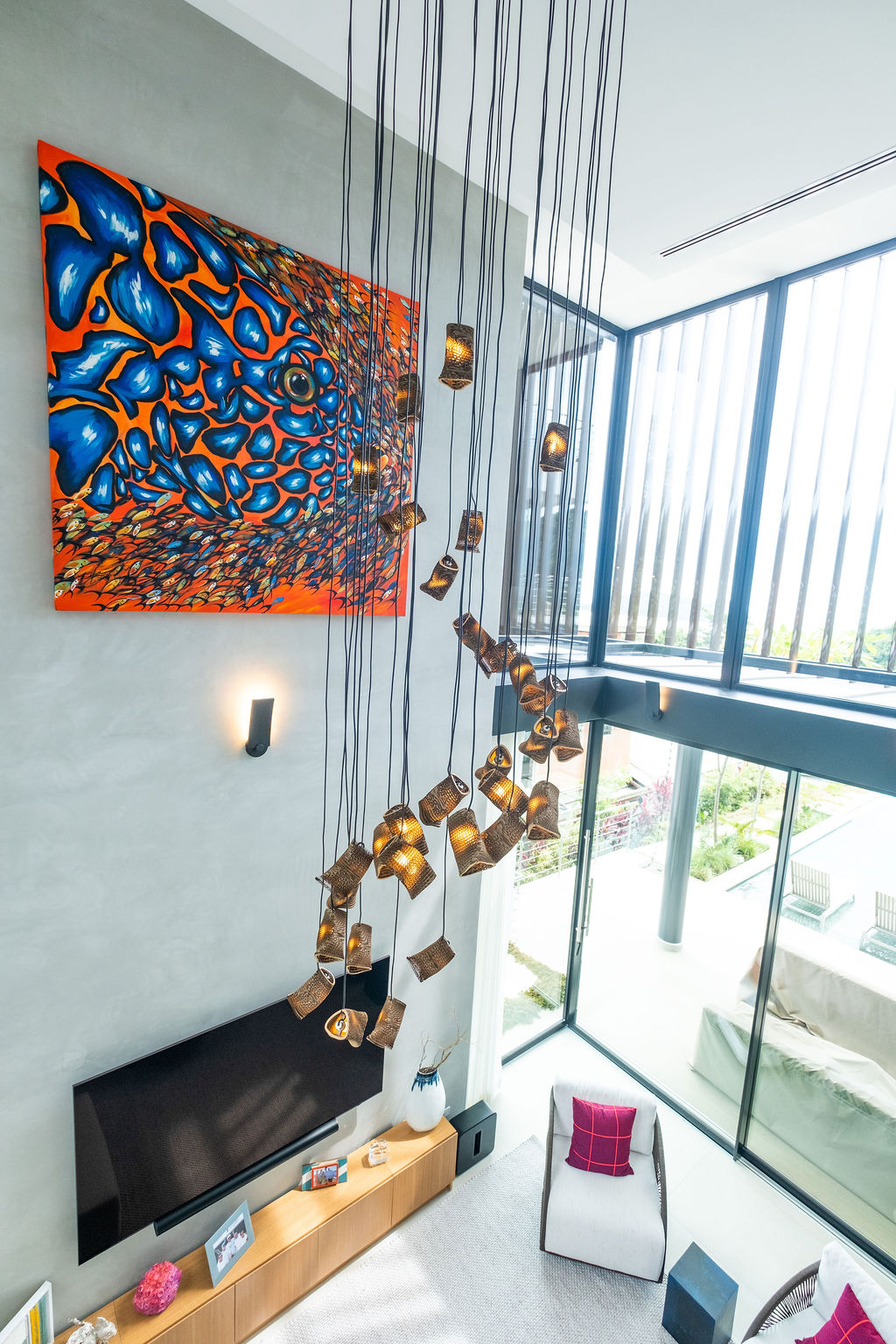 A stunning private residence in Costa Rica featuring our custom Murmuration installation. The home’s modern architecture, bold art collection, and soaring ceilings provide the perfect backdrop for the piece, allowing it to truly come alive.