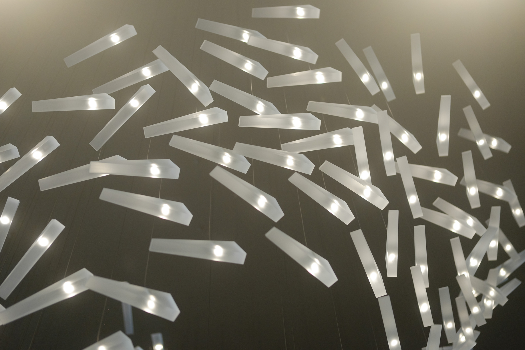 Set in the main lobby of a Capital Hill residential project, this nautically-inspired Loci installation evokes the swirling motion of a school of fish. Like all Loci fiberoptic installations, the unique sculptural form is tailored specifically to enhance its’ particular environment.