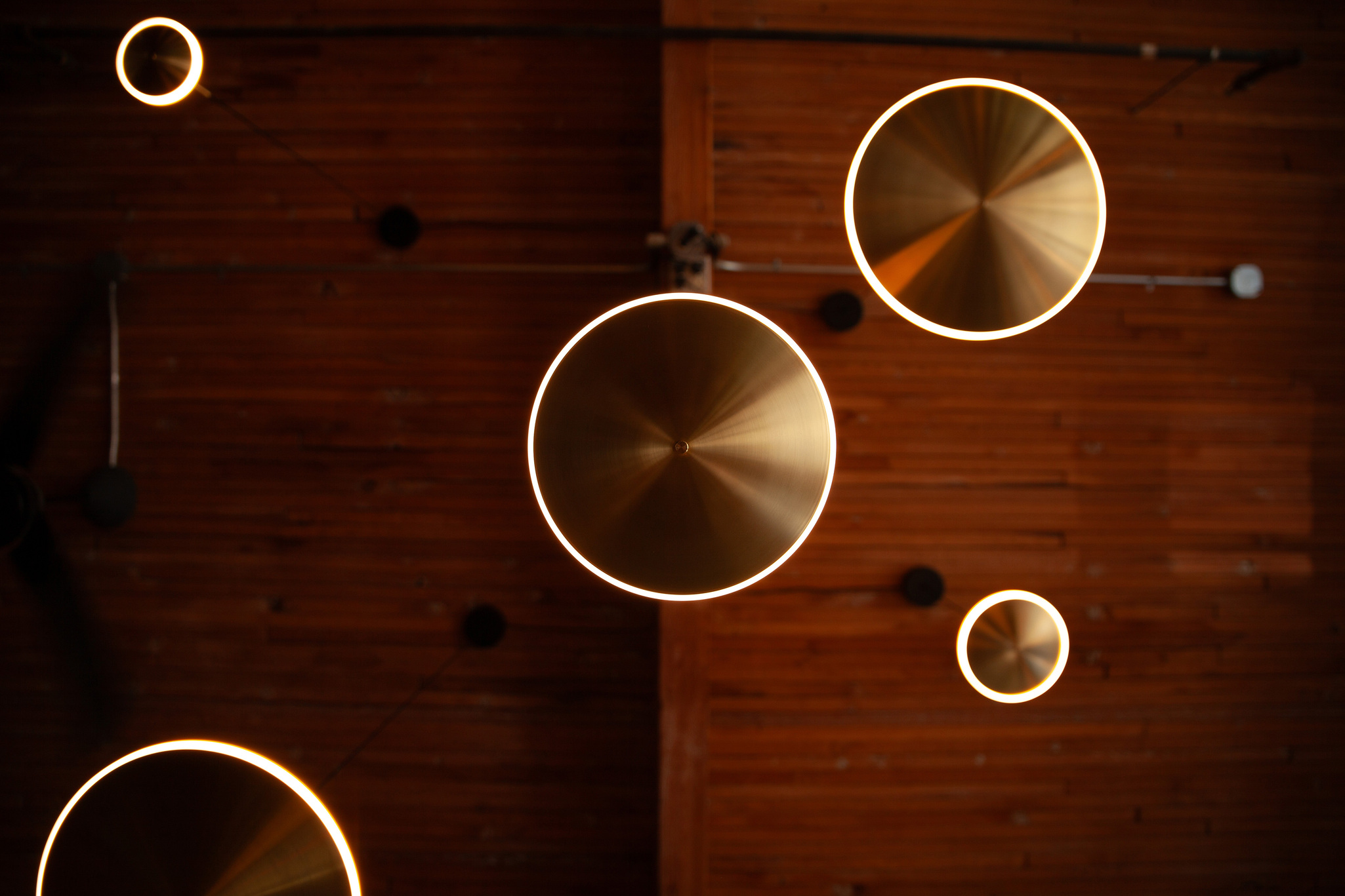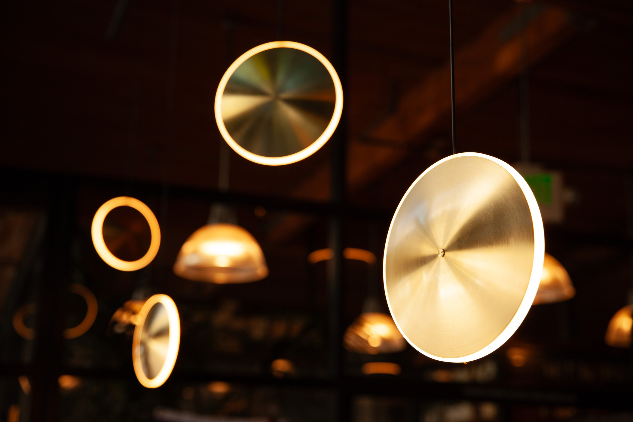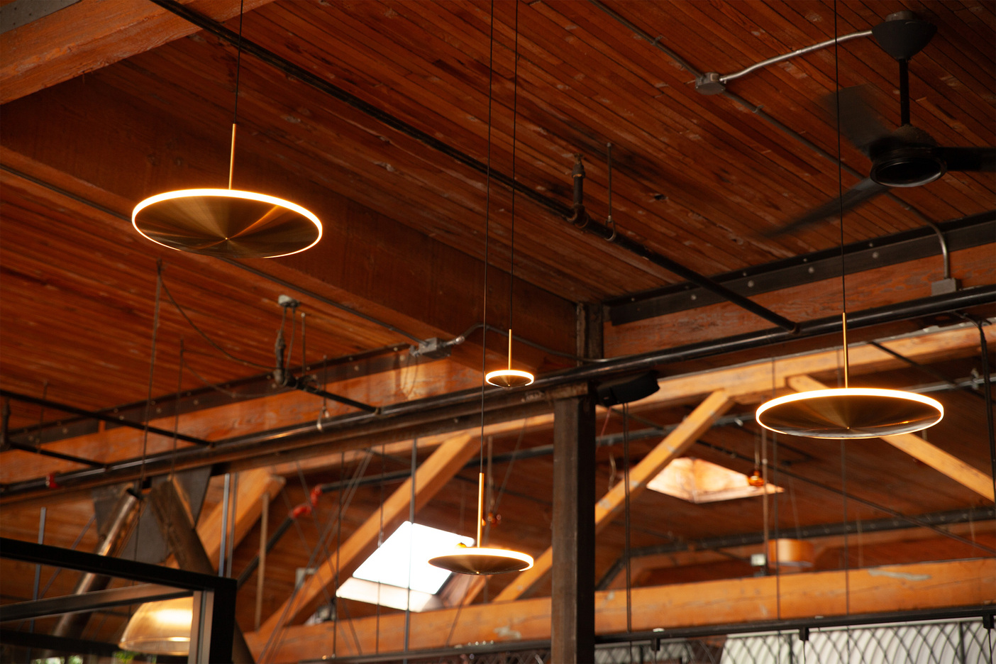 Buried in the heart of Capitol Hill next to the famous Chophouse Row is a Chic Industrial space that houses Plum’s organic and all-vegan establishment. A custom arrangement of classic Scraplights Moons highlight the back corners of the restaurant while an assortment of brass Chrona pendants compliment the main space.