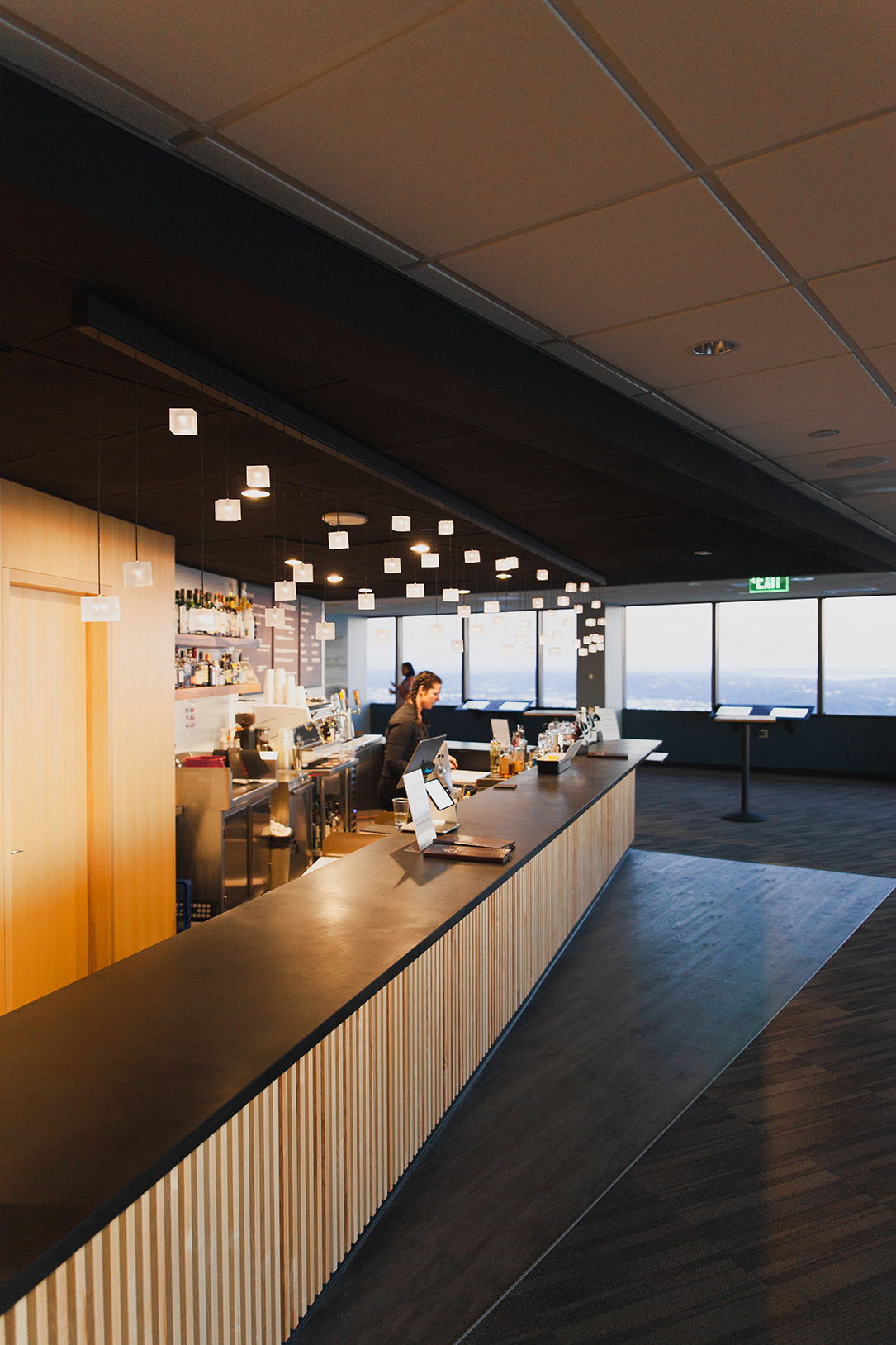The 73rd-floor public observatory in the Columbia Center includes a cafe and bar fitted with a custom single-channel Loci Series installation that spans across the entire bar. The attraction is also complemented by a Loci installation at the first floor entrance.
